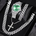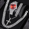 Diamond Luxury Steel Belt Quartz Watch Cuban Bracelet