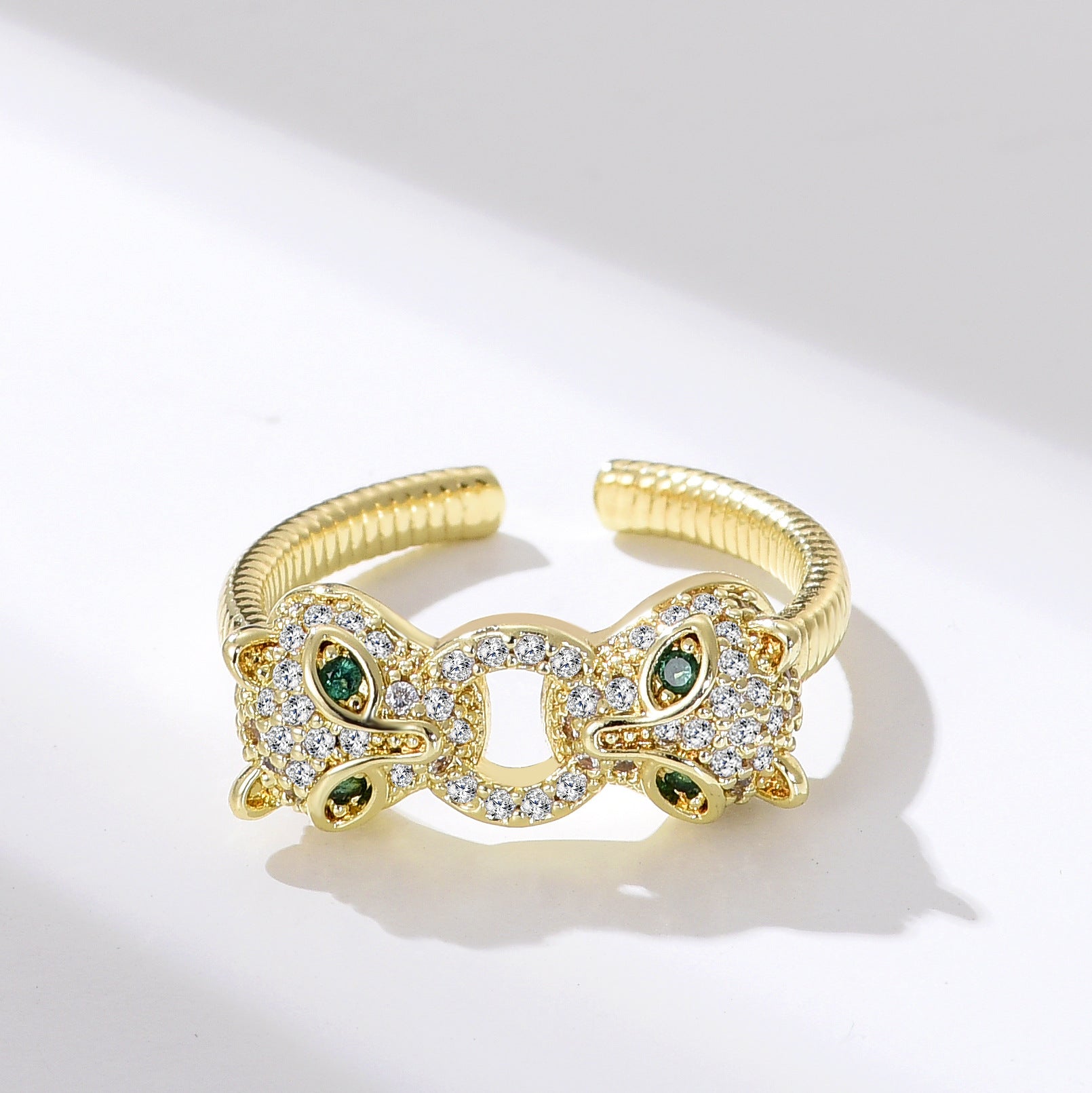 Zircon Double Panther Head Ring Popular Personality Hip-hop Pnunk Ring Cool Women Adjustable Leopard Finger Accessories